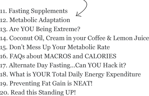 *Please note: Tutorials 18, 19 and 20 are NOT included in the free weekly email subscription. They are only available in the Intermittent Fasting Volume 2 eBook. These last 3 Tutorials teach really "NEAT" concepts that will help you optimize your fat loss results! Download your copy today!